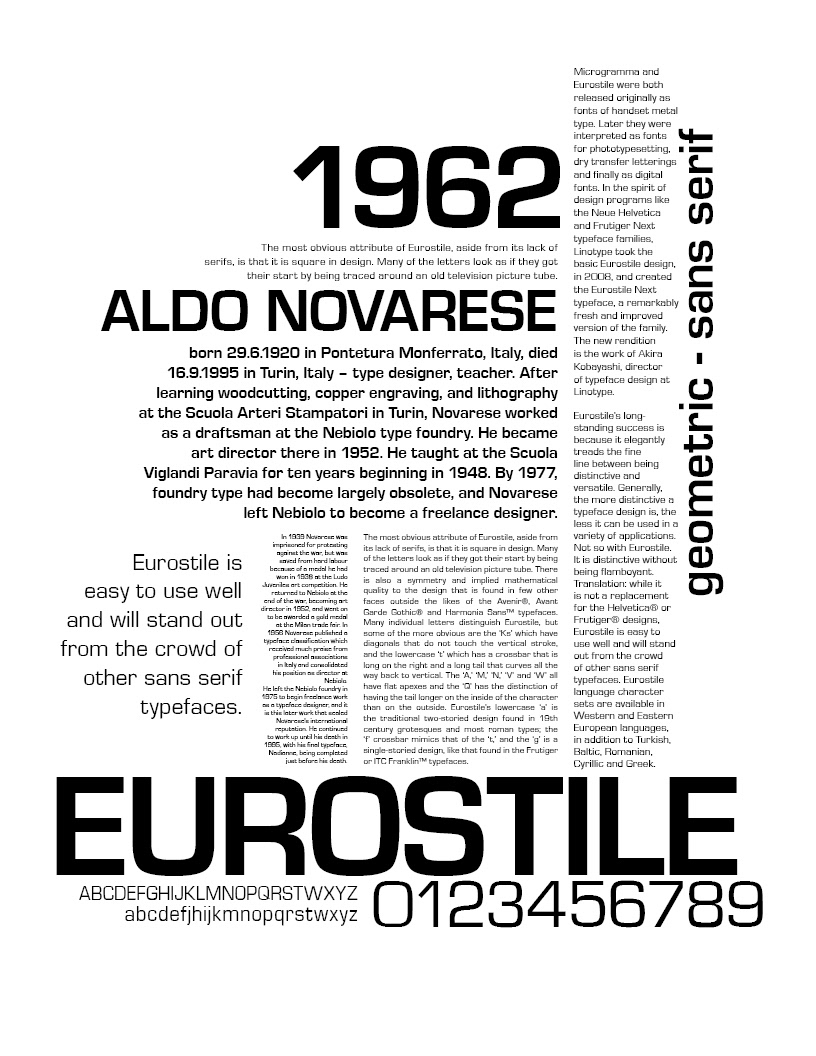 Informational poster for Eurostile