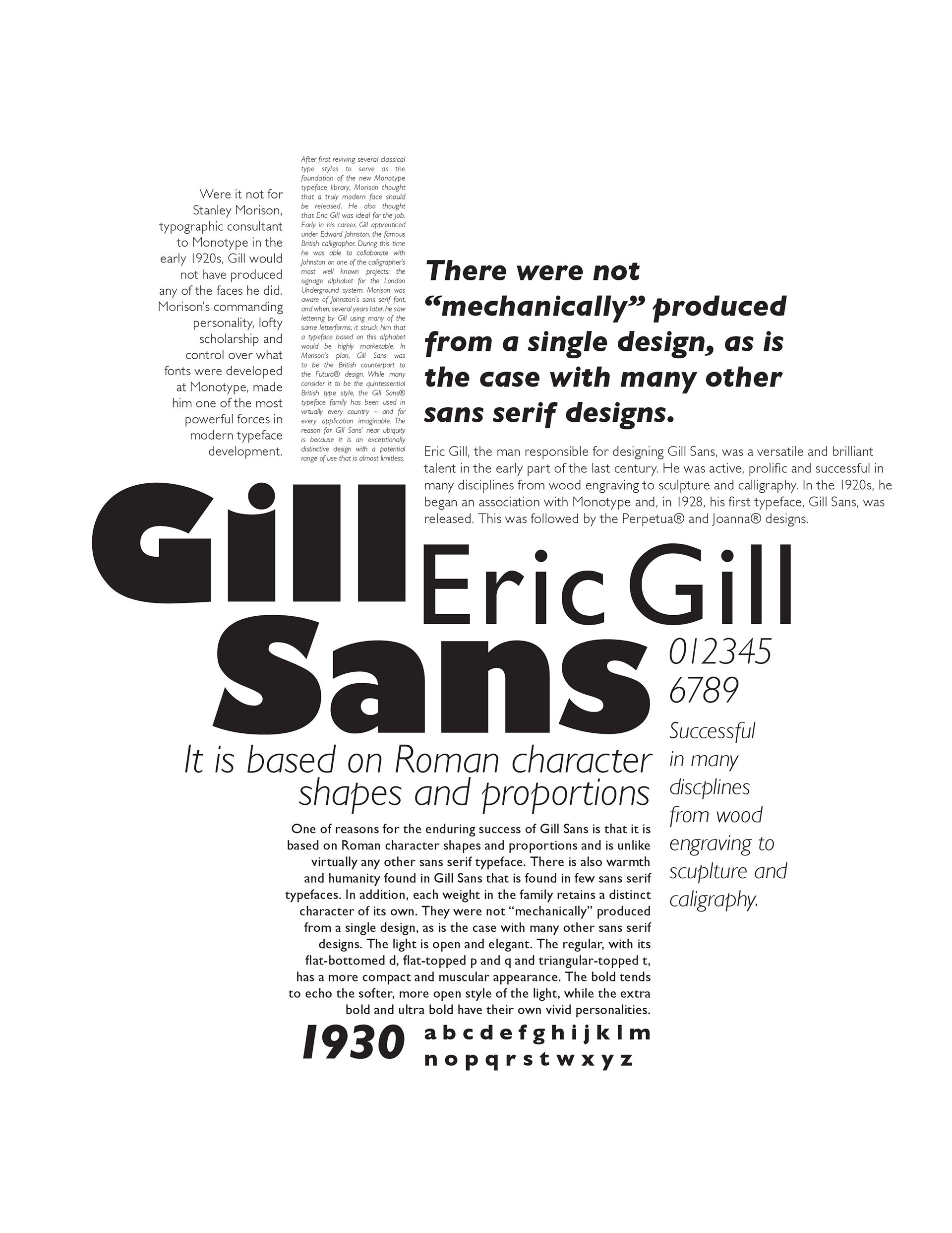 Informational poster for Gill Sans.