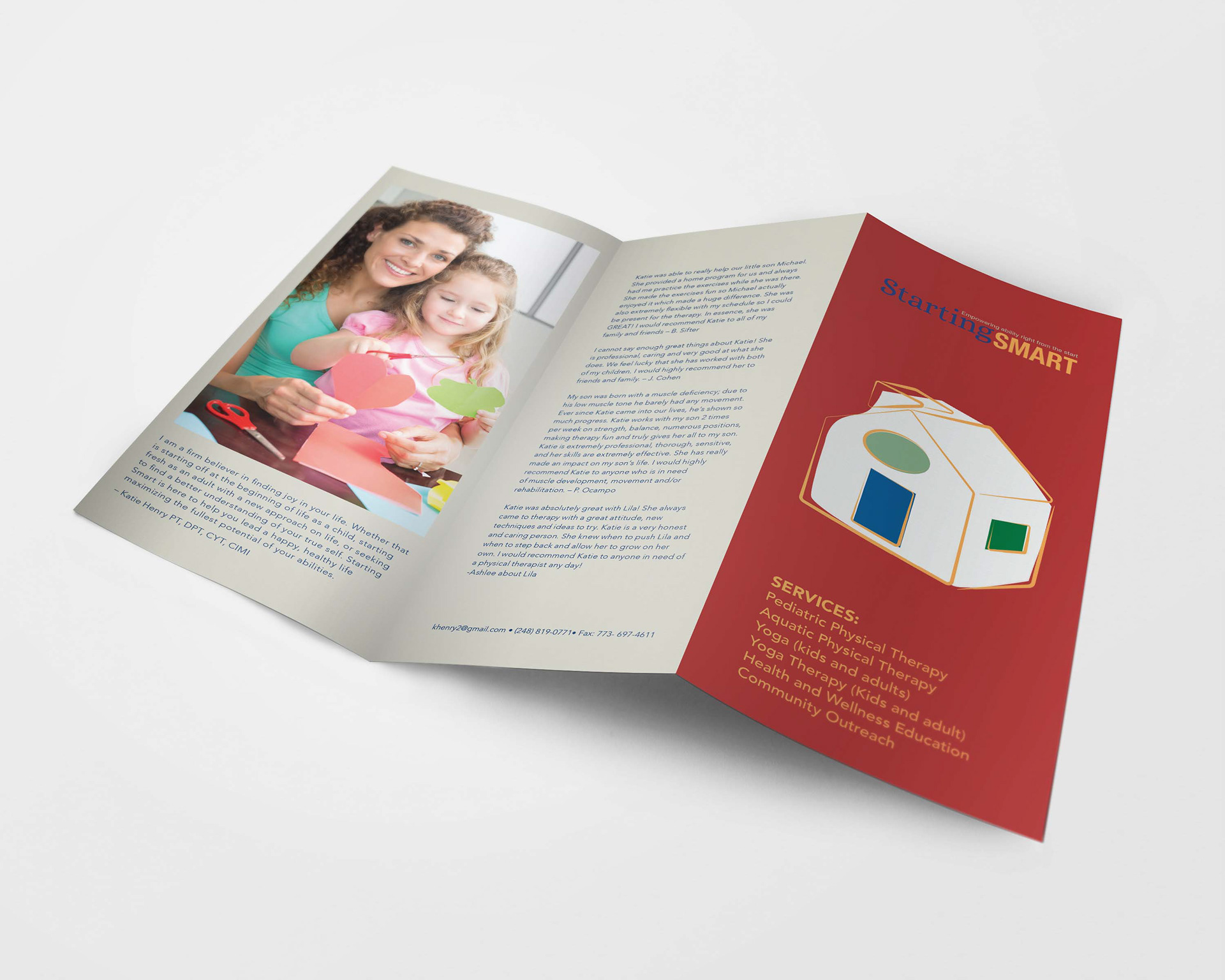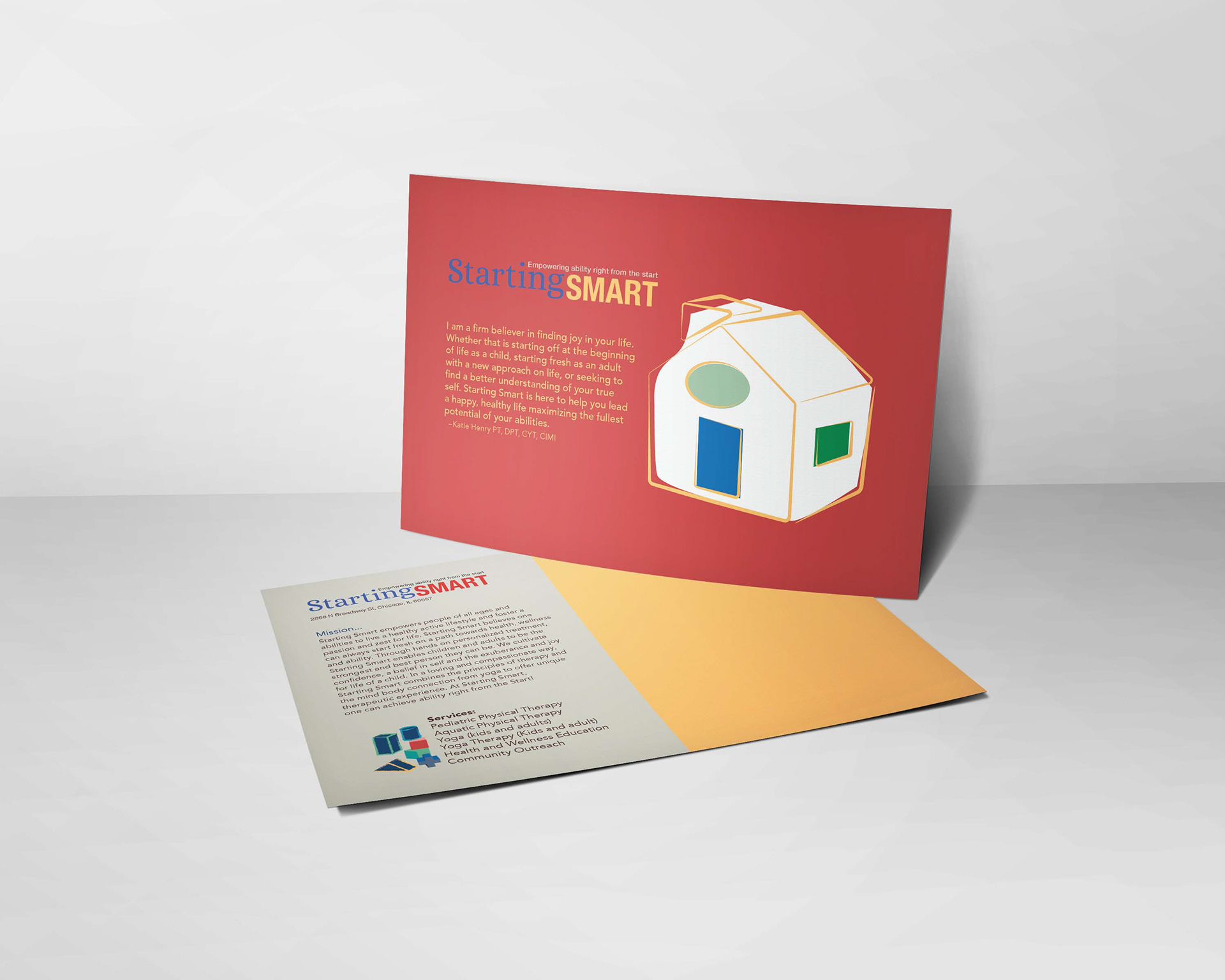 Brochure and post card design for a Physical Therapist who visit her patient house to house.